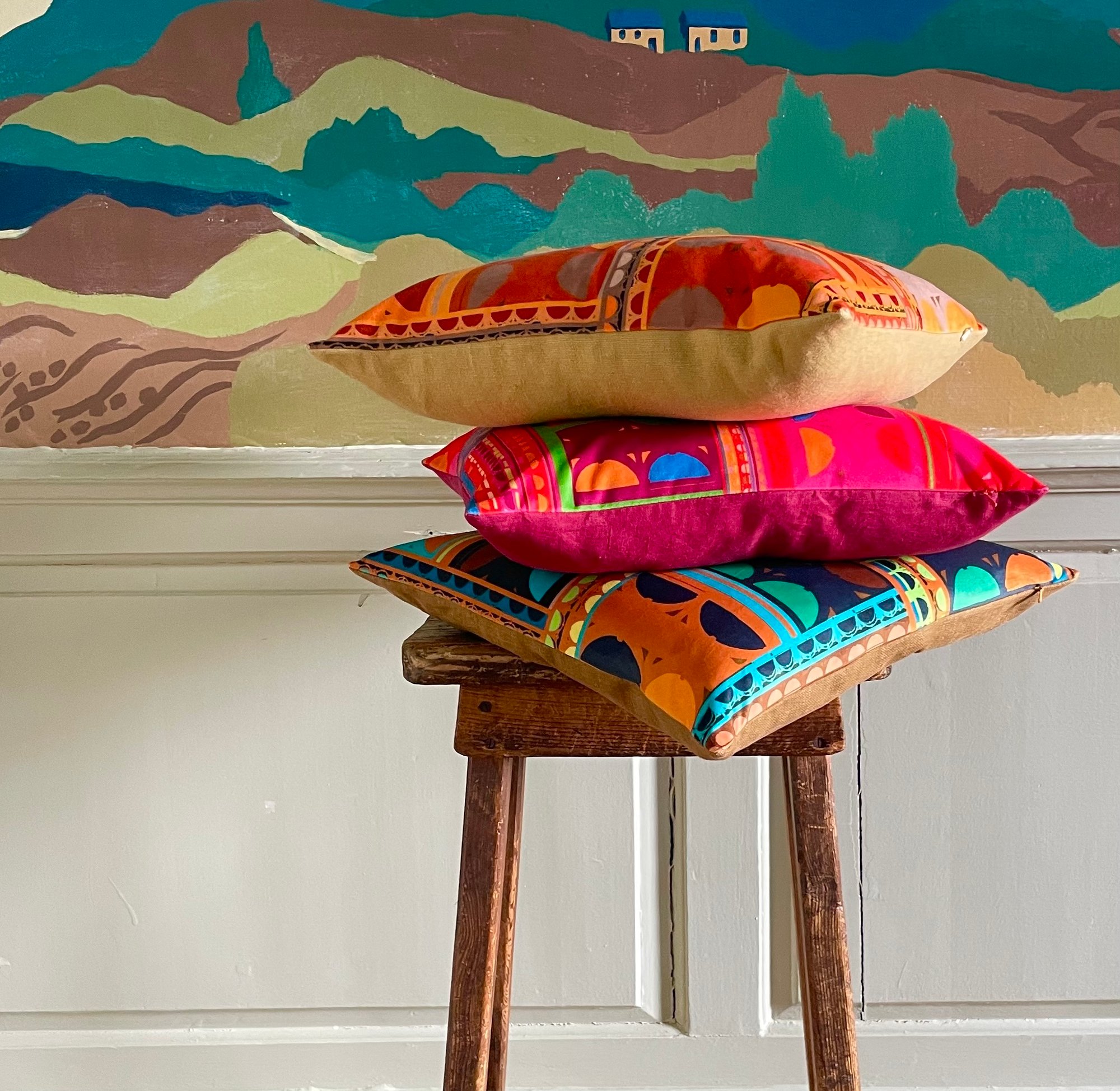 Pharma is a print inspired by the architecture of Dunfermline, my studio home. This is a print from my archive reimagined as lush velvet cushion.