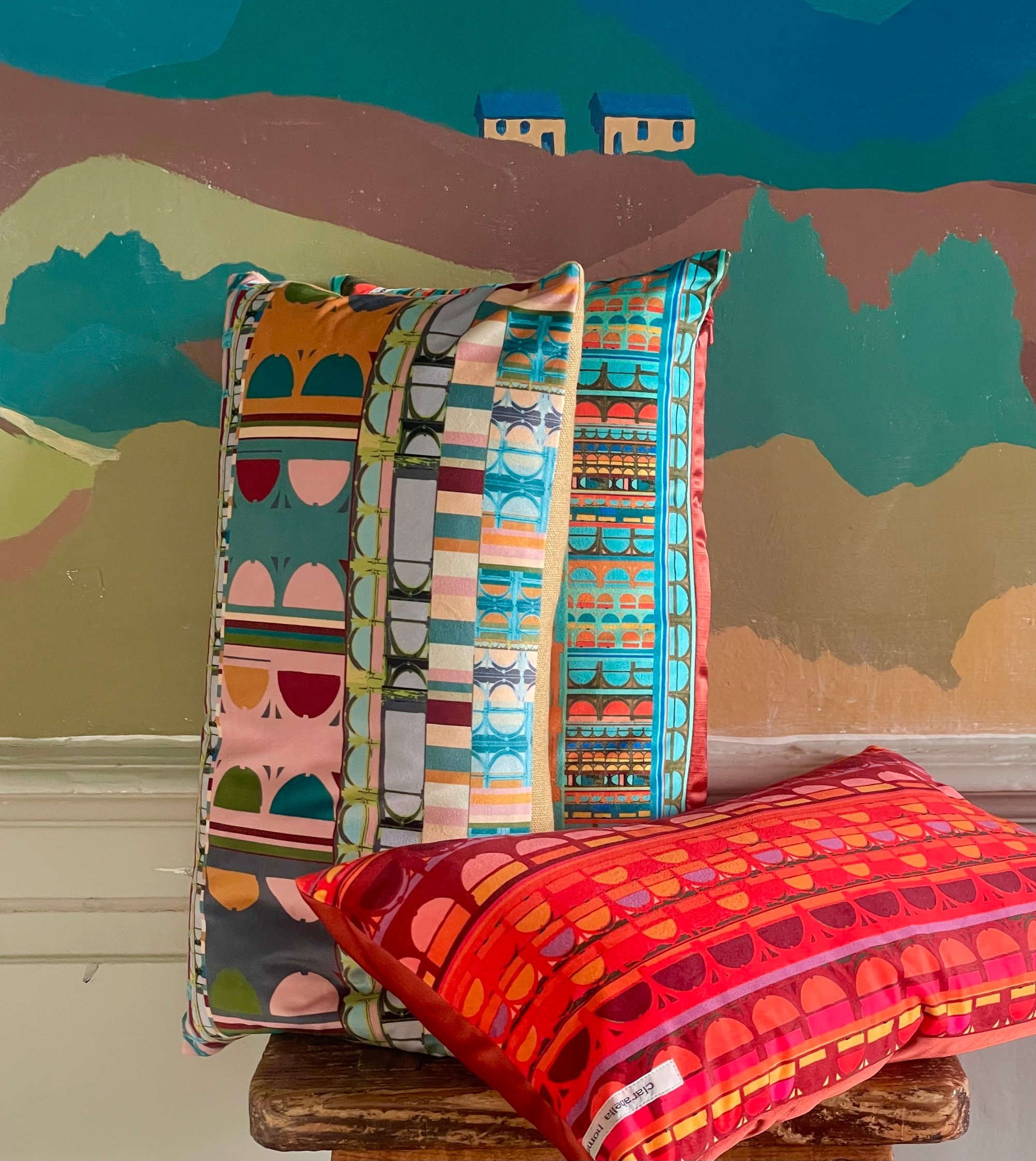 Pharma is a print inspired by the architecture of Dunfermline, my studio home. This is a print from my archive reimagined as lush velvet bolster.